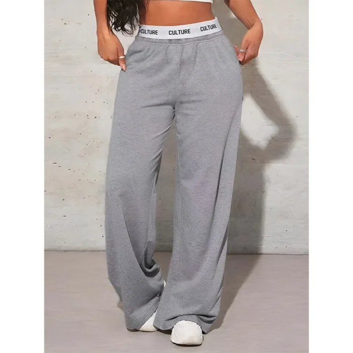 - اسم المنتج: سروال نسائي فضفاض بساق واسعة وخصر مرتفع