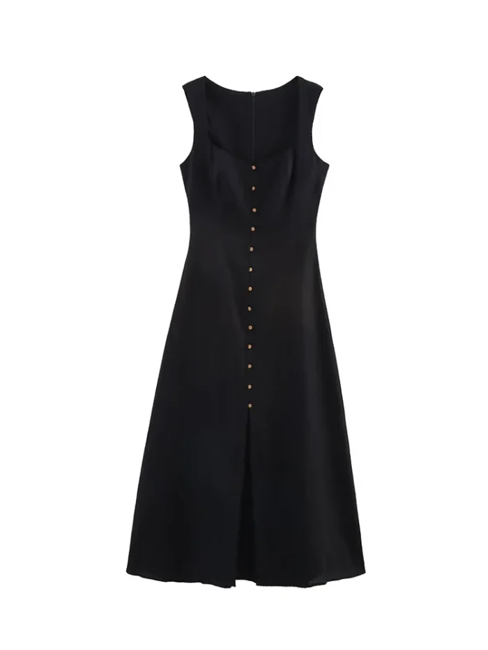 • اسم المنتج: فستان طويل أنيق بأزرار بلا أكمام